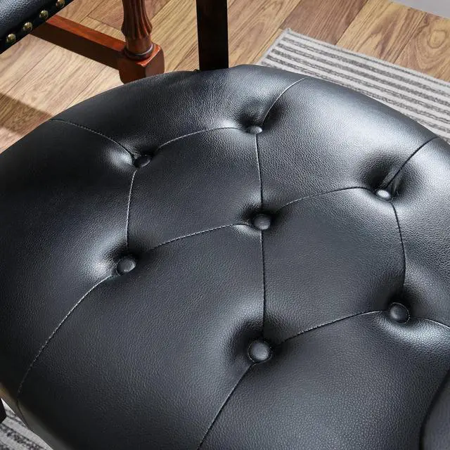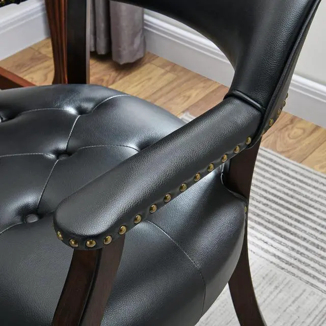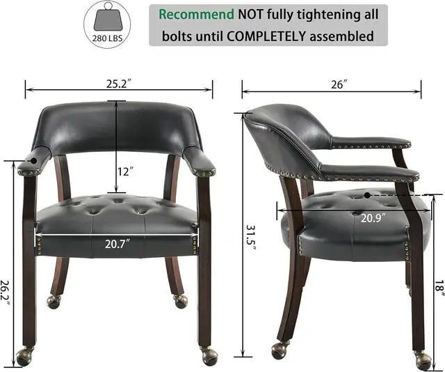 UNIQUE DESIGN DINNING CHAIR: With 31.5 ' ' H x 26' ' W x 25.2 ' ' L, whole chairs build a refined and elegant atmosphere. The curved solid wood legs with 360-degree swivel wheels and metal rivets on arms add more elegance and chic charming for your home. The suede skin make chair stylish and comfort. It is easy to clean, wear-resistant and breathable.