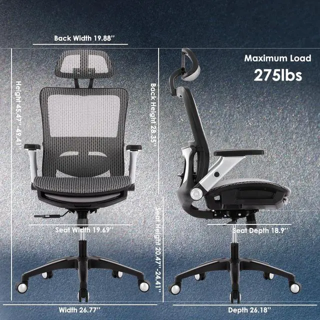 Comprehensive Functionality for Ultimate Comfort This COLAMY Ergonomic Office Chair features an adjustable headrest, 4D flip-up armrests, adjustable lumbar support, and height adjustment to cater to all your sitting needs. Whether you' re working, studying, or gaming, the office chair with foot rest design ensures comfort and productivity, helping you stay focused longer.