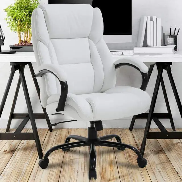 Sturdy & High Quality MaterialOur big and tall office chair has a heavy duty Metal base and nylon rolling casters that great stability and mobility. And the executive chair with soft PU leather upholstery and unique appearance, strong wear resistance, high elasticity, good hand feel to bring you incomparable enjoyment experience. Office chair executive chair computer desk chair big and tall office chair