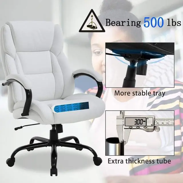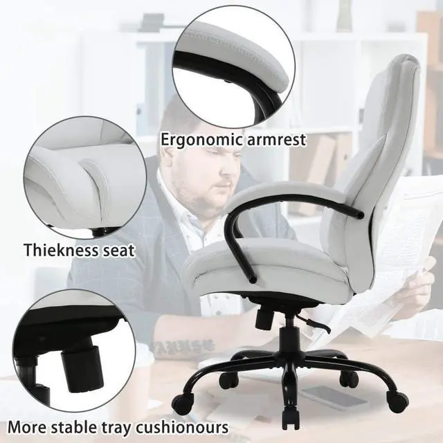 Adjustable Height & Comfortable ArmrestOur Big and tall office chair with extra thickness gas lift, fast up and down, pass the BIFMA and SGS, you can adjust the seat high from 20-23. The office chair arms have a ergonomic design with extra thickness PU padded armrest, it is can maximizes the comfort of the neck, back, spine and back. Good for blood circulation and maximize your work efficiency. Ergonomic office chair big and tall desk chair executive chair high back office chair