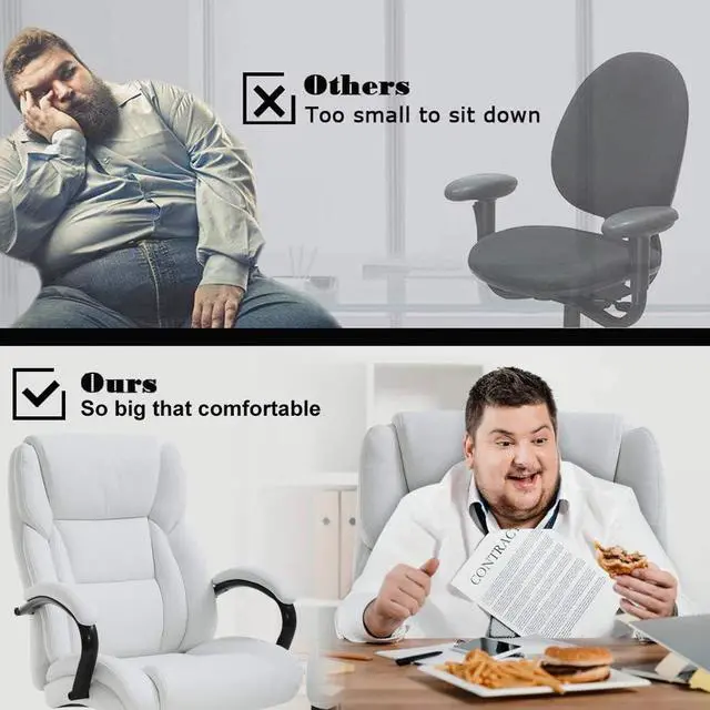 Big and Tall Office Chair for EveryoneOur big and tall office chair with ergonomic design gives you maximum support for comfort and convenience. The executive chair has soft padding and headrest for less pressure on the back of your legs so you can stay comfortable even when you have to sit down for hours. Our adjustable Executive chair can supports up to 500lbs and all of people. The ergonomic desk chair is the best gift for people who are sitting in the office for a long time.