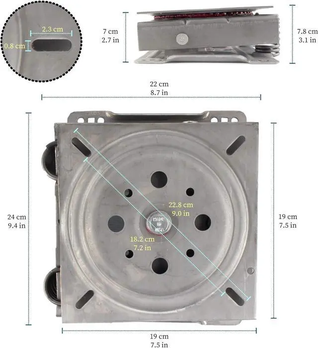 Measures 8 1/4" x 9 3/8" x 3 thick - Mounting holes are rectangular shaped and measure approximately 7 x 23mm, the distance between mounting holes are 5.5 " x 6.25 "