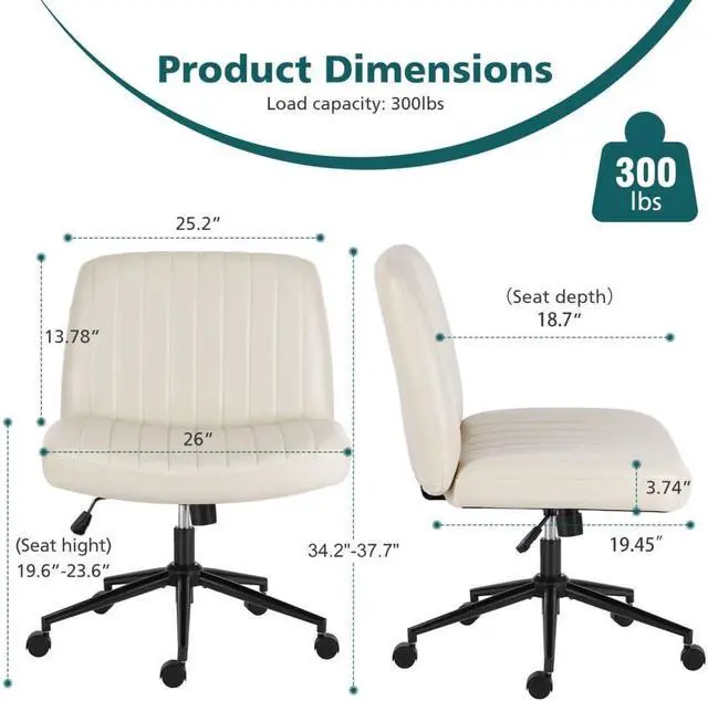 Sturdy and DurableThe office desk chair is constructed with a high-quality metal frame featuring black rustproof plating, being stable and firm. The backrest and cushion surface are made of high-quality fabric, which is soft, strong and not prone to deformation, suitable for tasks like working, studying, makeup, reading, sewing and so on. It has a load-bearing capacity of 300 lbs.