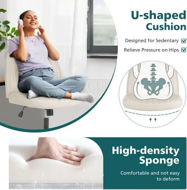 Comfortable & StylishThe backrest of the criss cross office chair snugly conforms to human body curves and provides adequate lumbar support. The seat cushion and backrest, made of high-density sponge, can ideally relieve the pressure from prolonged sitting. The vanity chair with back' s design can harmoniously integrate with various decorations.