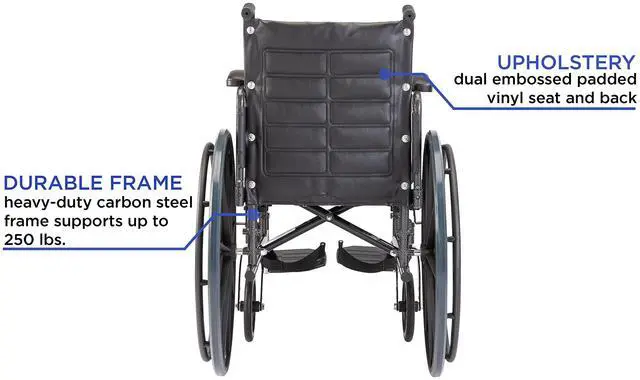| Chair Type | Entry Level Basic | Lightweight, Easier to Propel | Lightweight, Easier to Propel, Smaller Overall Width | Heavy Duty Weight Capacity | Bariatric Weight Capacity |