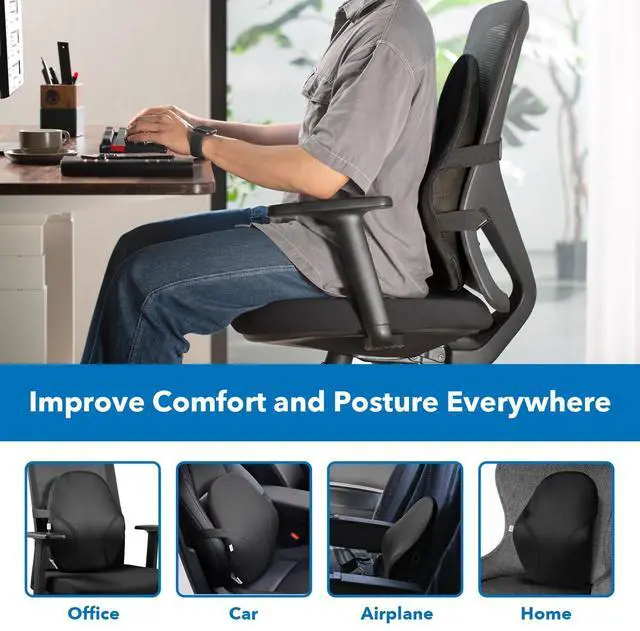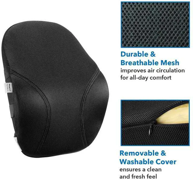 **Experience Unmatched Comfort with the Mount-It! Ergo Collection Lumbar Support Pillow** Transform your sitting experience with the Mount-It! Ergo Collection Lumbar Support Pillow, designed to provide exceptional comfort and ergonomic support for your lower back. Whether you're working at your desk, driving, or gaming, this compact back cushion ensures you maintain a healthy posture and enjoy relief from back pain. Crafted with high-quality memory foam, this lower back pillow conforms to your body's natural contours, offering personalized support that targets your lower back. The curved design of the pillow ensures maximum comfort, making it an ideal car back support or desk chair back support solution. Stay cool and comfortable with the breathable mesh cover, which promotes optimal air circulation and prevents heat build-up during long sitting sessions. This feature ensures that your lower back support remains comfortable throughout the day. The durable cover is easy to maintain, featuring a convenient zipper for effortless removal. Simply unzip and wash the cover to keep your lumbar support pillow for car clean and hygienic. For added convenience, the pillow comes with two adjustable elastic straps that ensure a secure fit on most chairs. This ensures that your car back support or desk chair back support stays in place, providing consistent lower back support without the need for constant adjustments. Upgrade your seating experience with the Mount-It! Ergo Collection Lumbar Support Pillow and enjoy improved posture, reduced back pain, and enhanced overall well-being.