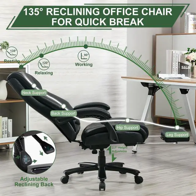 The Executive Computer Chair redefines luxury and functionality with its 440lbs ultra-strong weight capacity, offering unmatched durability and stability. Designed with fluid lines and exquisite craftsmanship, it exudes sophistication and artistic charm. Adjustable height and tilt angles ensure optimal comfort, allowing you to work in cozy.