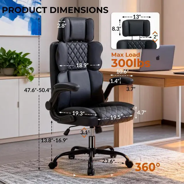 [High Quality PU Leather]: The executive chair is made of whole PU leather, which is waterproof, skin-friendly, wear-resistant, colorfast, non-shedding and easy to clean. The leather is cut and sewn by hand, simple and fashionable appearance