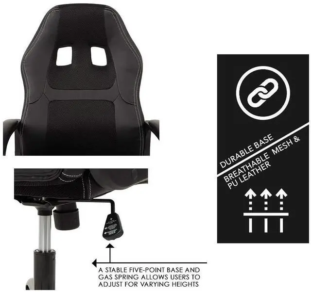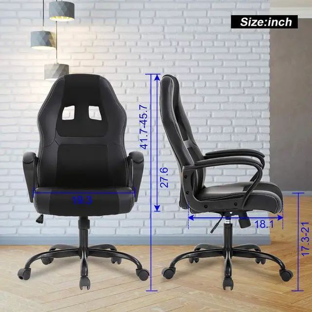 Whether youre spending long hours at the office, in front of the computer, or gaming all night, Our high-back Gaming chair is built for long-lasting, maximum comfort. The chairs ergonomic design and adjustable Height and Recline allow you to customize your comfort to meet your individualized needs, while the contoured-for-support high-density sponge cushion and soft leather lining make those long hours at the office a little more tolerable.
