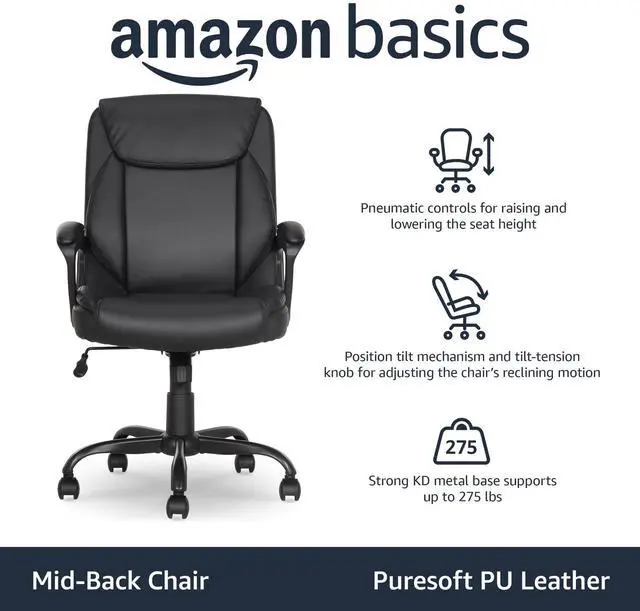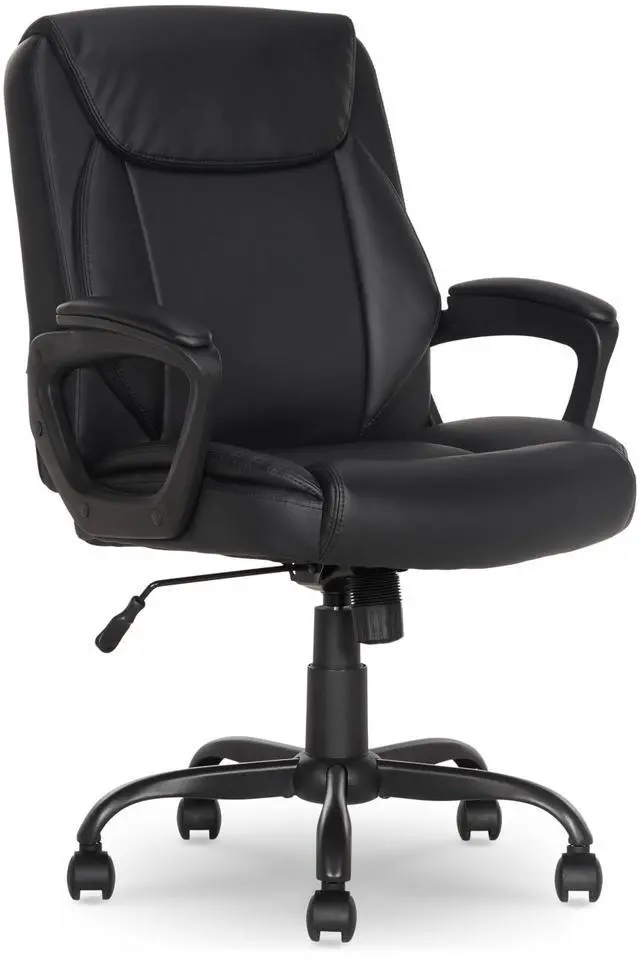 Classic Puresoft PU Padded Mid-Back Office Desk Chair with Armrest, Easy Assembly, Sturdy Metal Base, Wheels, 275lb Support, 26"D x 23.75"W x 42"H, Black