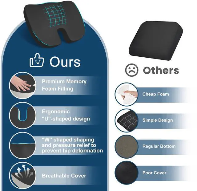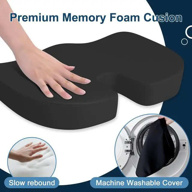 PREMIUM MEMORY FOAM FILLING - The office seat cusion is made of premium memory foam, ergonomic "U" shaped design for effectively support the coccyx, relieve the hip pressure caused by long time sitting.