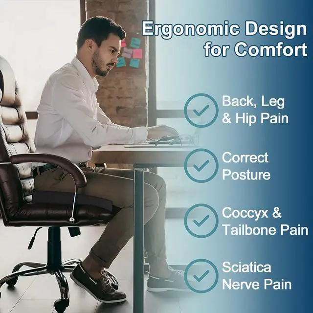 EFFECTIVE & USEFUL - This unique design of cusion can provide adequate support for hips and legs, effectively reducing sciatica, tailbone, hip pain, back pain, leg numbness.This chair cushion also helps to adjust posture and relieve sedentary fatigue.