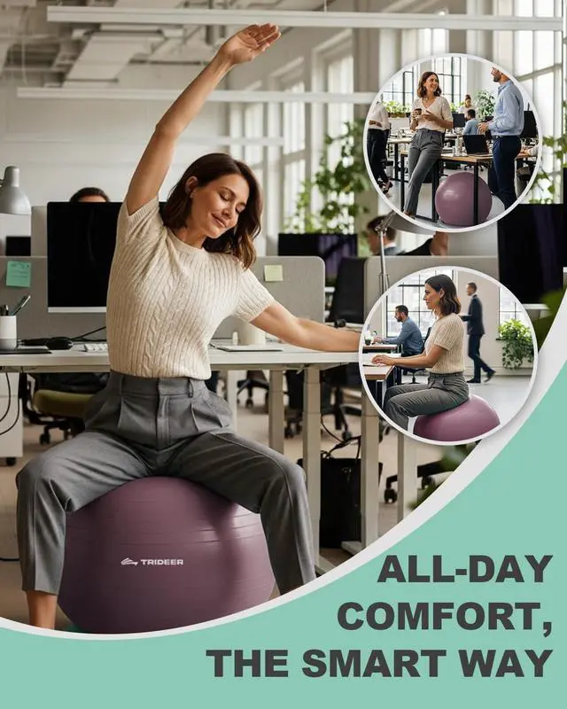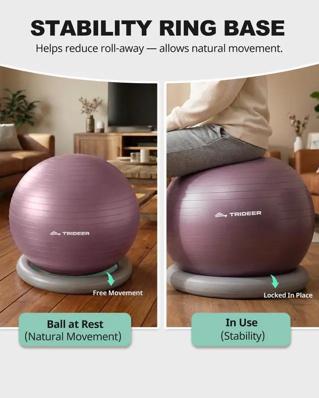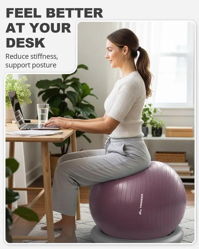 Exercise Ball for Office Desk, Yoga Ball Chair to Relieve Back Pain, Stability & Fitness Ball Seat with Base, Home Gym Core Workout, Abs, Stretching & Therapy