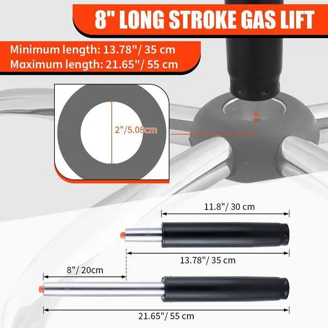 Universal Office Chair Gas Lift Cylinder Replacement, 8" Long Stroke Gas Lift