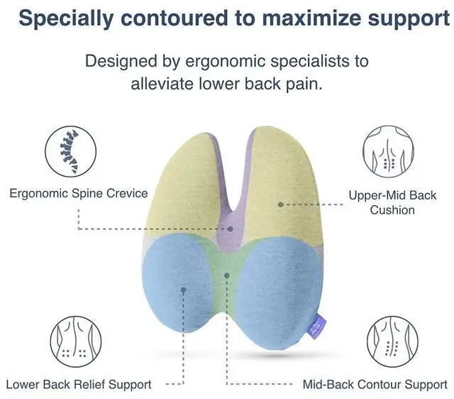 Office workers love our pillow because its ergonomic shape & firm support helps posture & alleviate back pain from long working hours. Commuters swear by our pillow because it relieves lower back pressure through specially designed contours that car or airplane seat lack. Try our pillow, You will enjoy our pronounced back support and all-day comfort.