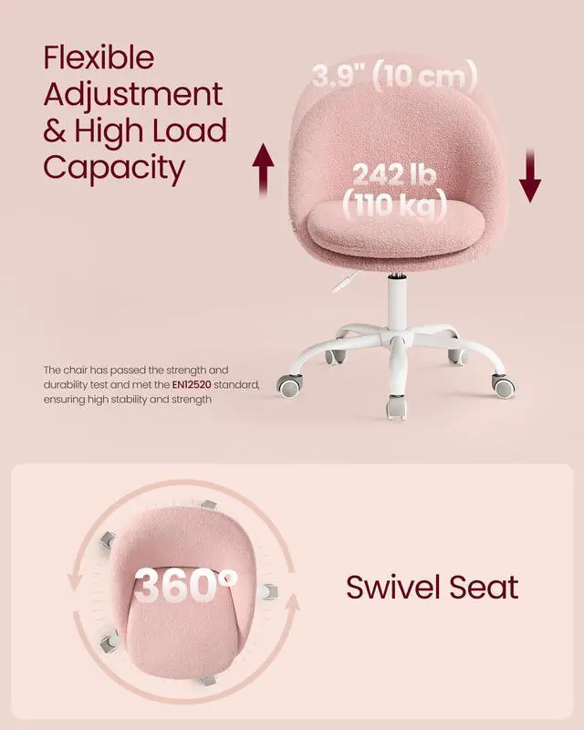 | Item Type Name | Adjustable Swivel Armless Desk Chair, Teddy Fleece, Compact for Small Spaces, Bedroom, Jelly Pink UOBG020R93 |