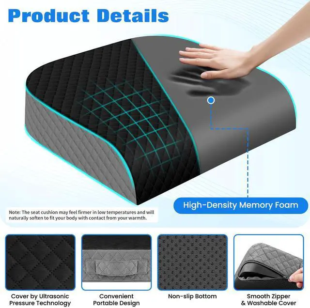 Premium Memory Foam: Made with high-quality memory foam, this seat cushion delivers an ideal blend of comfort and support. The high-density core offers firm cushioning that helps reduce coccyx pressure and hip discomfort, even during long periods of sitting