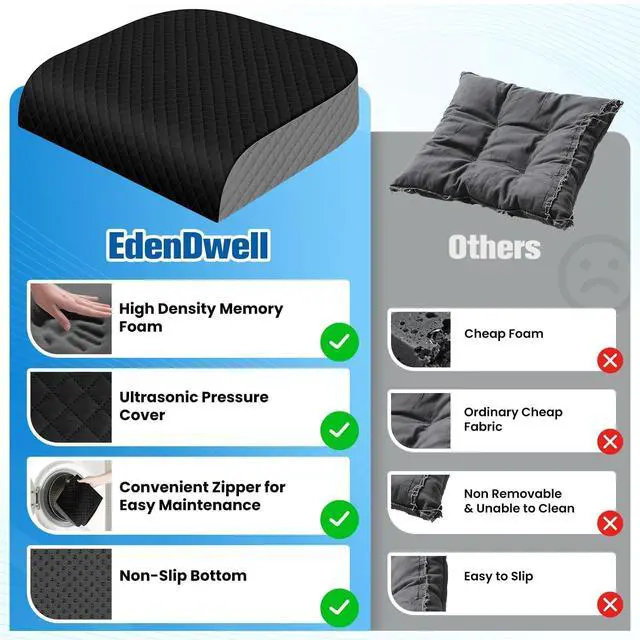 Versatile Use for Daily Comfort: Perfect for office chairs, couches, kitchen or dining chairs, car seats, airplane seats, yoga and wheelchairs, EdenDwell cushion offers adaptable support for office workers, delivery drivers, seniors and anyone seeking comfort from prolonged sitting or recovery needs