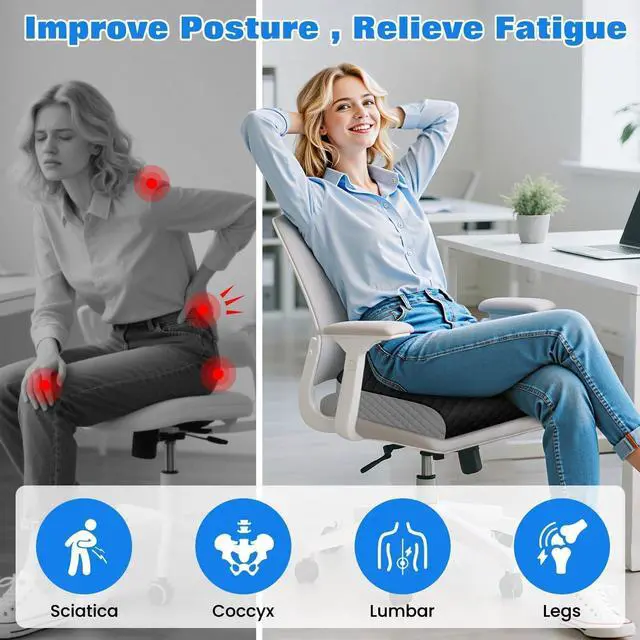 Large Size: With dimensions of 17.72*16.14*3, this large chair cushion offers plenty of space to sit comfortably while easing pressure on your body. The beveled edge design not only adds a sleek look but also promotes proper posture, making it suitable for office chairs, cars, wheelchairs, and home use