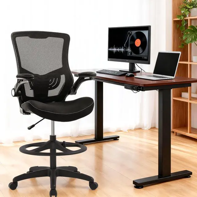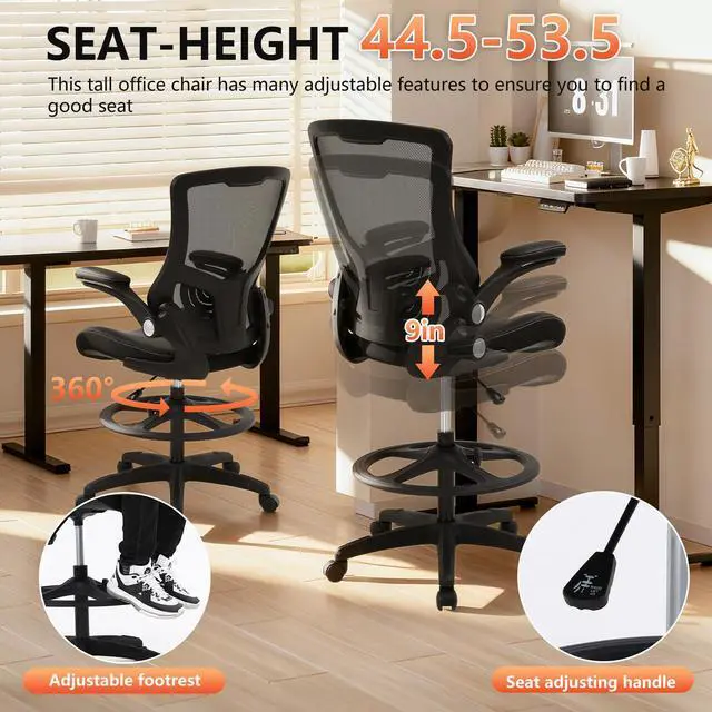 ADJUSTABLE LUMBAR SUPPORT & FLIP UP ARMS - The drafting chair should give you support for a proper body posture including sufficient cushioning to the back, neck, arms and especially around your lumbar region, suit long time use. Drafting chair tall office chair drafting stool.