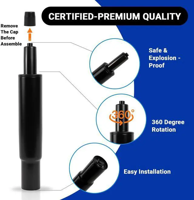 The Rythalix Office Chair Gas Cylinder redefines safety standards with industry-first 4-stage pressure control - 37% more stable than conventional 3-stage cylinders. Our gas lift cylinder uses military-grade sealed chambers and thermal expansion buffers to eliminate explosion risks, certified by BIFMA X5.1-2017 safety standards."