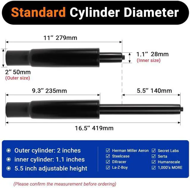 ![]() Rythalix Universal Office Chair Gas Lift Cylinder Replacement (2.4 inch) | ![]() Rythalix 3.9" Office Chair Cylinder Replacement - Heavy Duty 1000lbs Class 4 ... | ![]() 5.5'' Offce Chair Cylinder Replacement | ![]() 5.5'' Short Offce Chair Cylinder Replacement | ![]() 8'' Offce Chair Cylinder Replacement | |