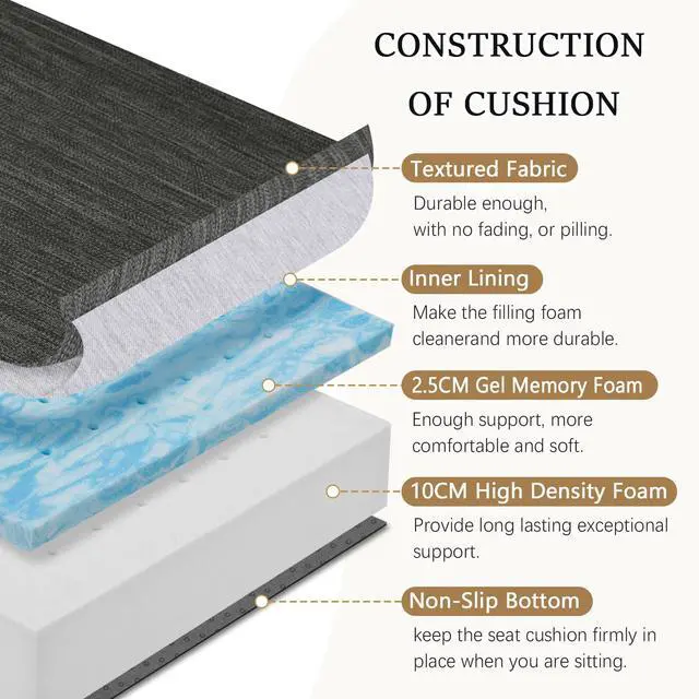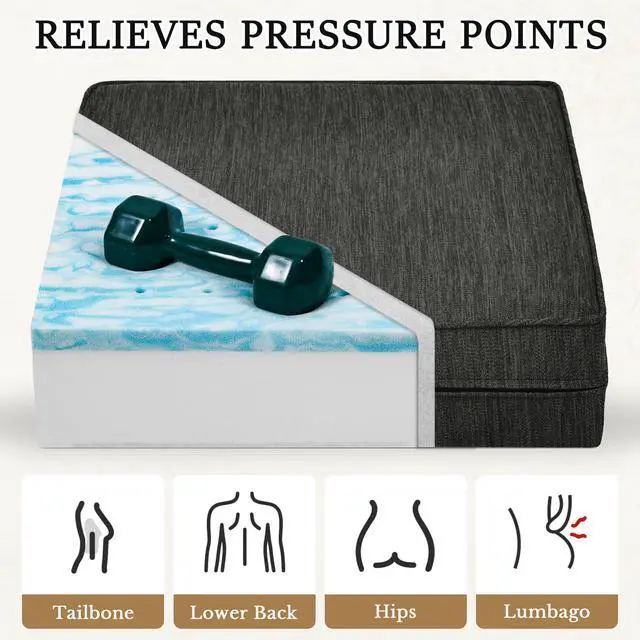 Dual-Layer Foam DesignThe top layer of recliner seat cushion consists of premium and soft gel memory foam, while the bottom layer is high-density foam. This recliner seat cushion perfectly distributes pressure when you sit down, conforms to the ergonomic curve of the human body, provides the perfect balance of support and luxurious comfort, effectively relieves back pain, tailbone pain, ensuring a comfortable experience.