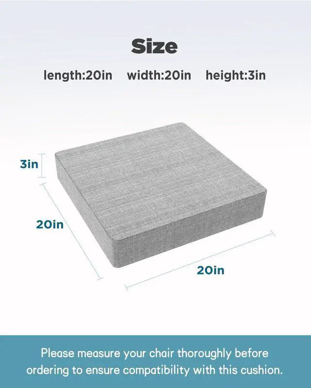 Givanlee Large Seat Cushion 20x20in(LxW)-3 inch Thickness