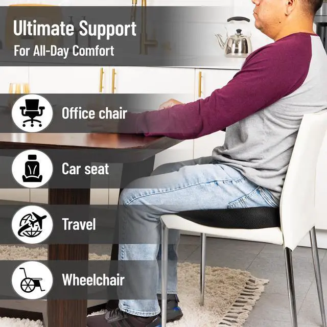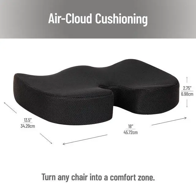 • Air-Cloud Cushioning: High-density memory foam supports hips and tailbone for lasting comfort in office car or wheelchair
