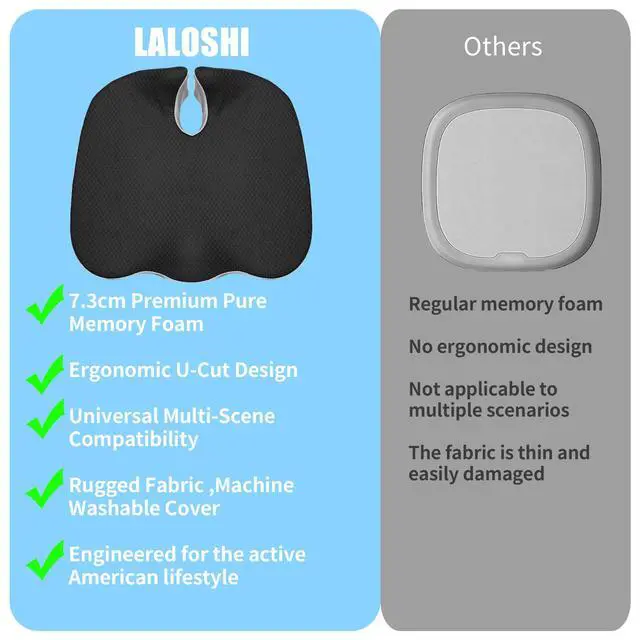 Effortless Daily Use - Designed for a secure, slip-free fit without straps or buckles. Just place it on your office chair and get to work. This memory foam cushion offers immediate comfort and stability for every workday.