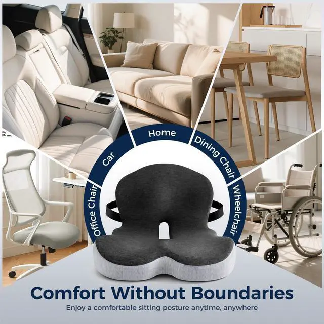 Ergonomic One-Piece Design:This L-shaped seat cushion is an integrated chair cushion that perfectly fits the natural curve of your spine, providing firm lumbar and hip support. Our office chair cushion encourages a healthy S-shaped posture, and reduces discomfort from long sitting sessions.