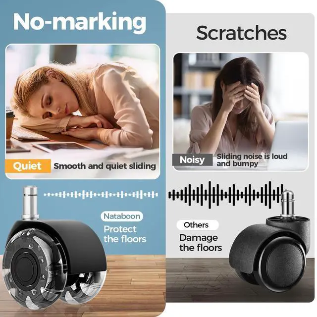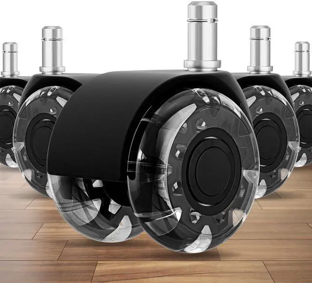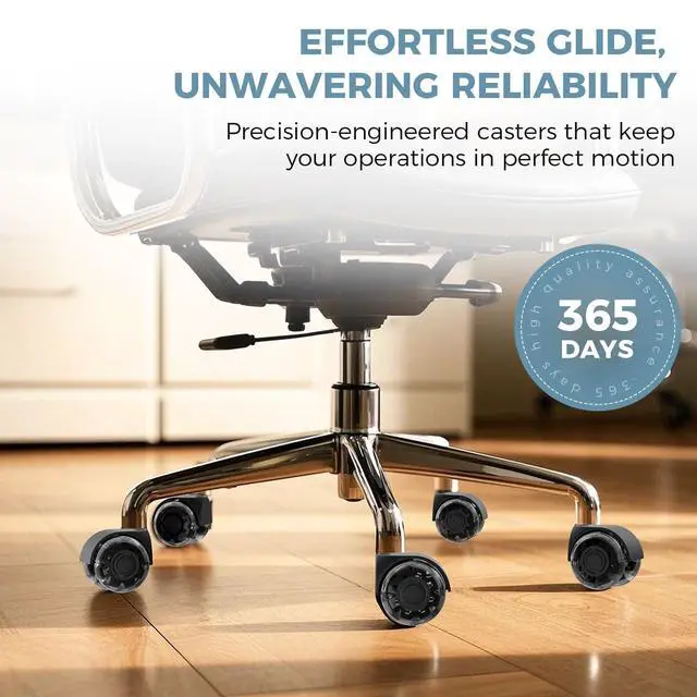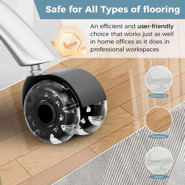 Floor-Friendly Design for All SurfacesProtect your floors with these high-quality, soft polyurethane casters that prevent scratches and dents. They glide effortlessly on hardwood, laminate, tile, Short haired carpet, and more, eliminating the need for chair mats while maintaining floor integrity.