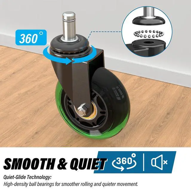 Whisper-Quiet, Smooth GlidePrecision bearings deliver silent rollingno squeaks, no rattles. Smooth movement reduces vibration for a more comfortable workspace and helps your chair roll steadily.