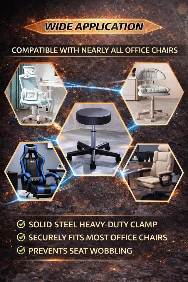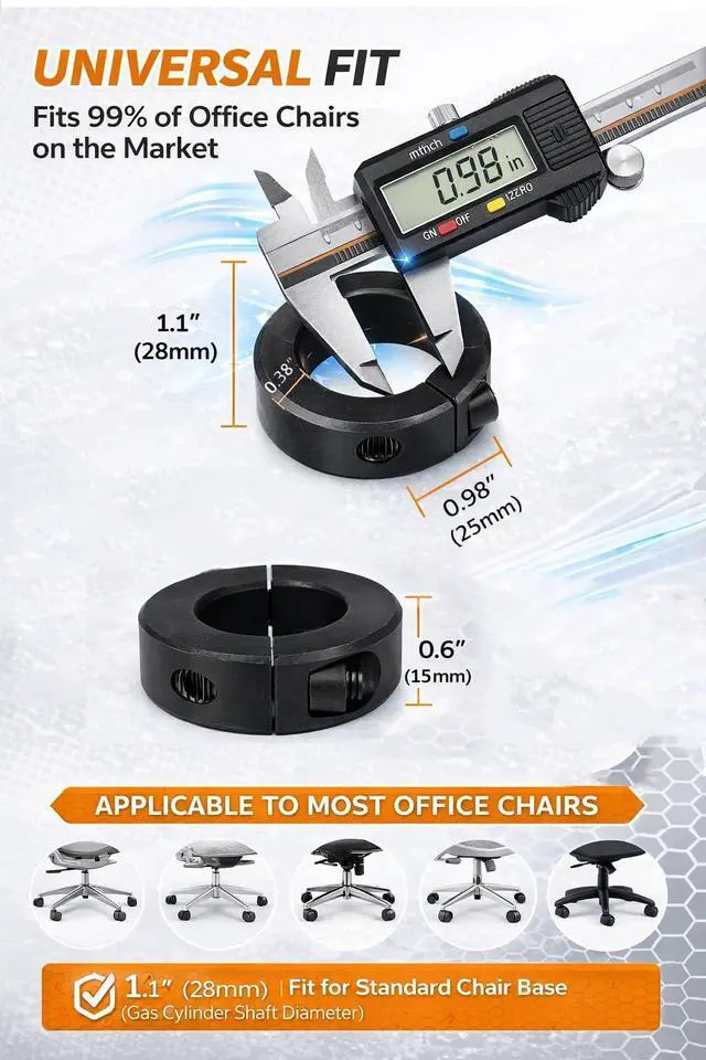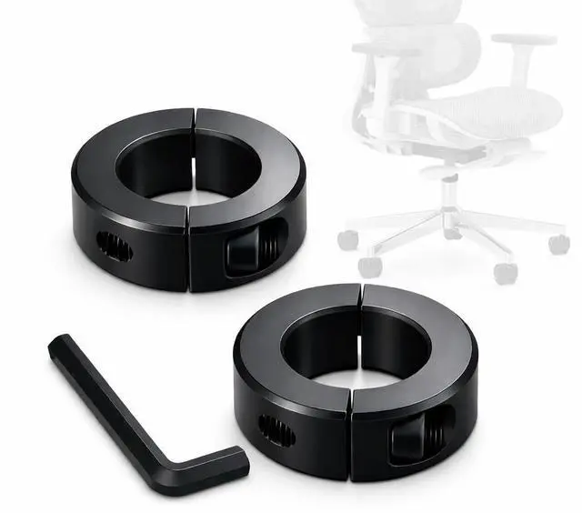 Fits Most Office Chair Cylinders (0.981.1 in Diameter) Compatible with most office chair cylinder sizes (measure the cylinder before ordering). Use 1 clamp or stack 2 for height tuning. Includes 2 clamps + hex wrench for a secure, adjustable hold.