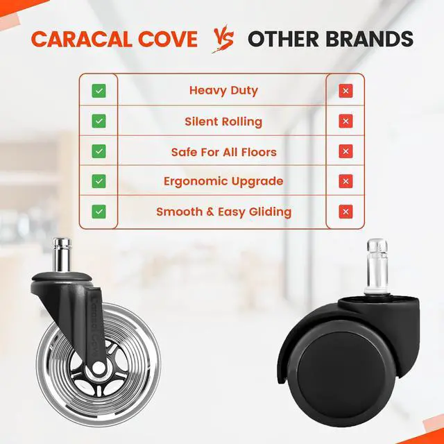 The Caracal Cove presents the quality and durability of its office chair wheels and chair casters for hardwood floors, setting a standard for reliable chair wheels.