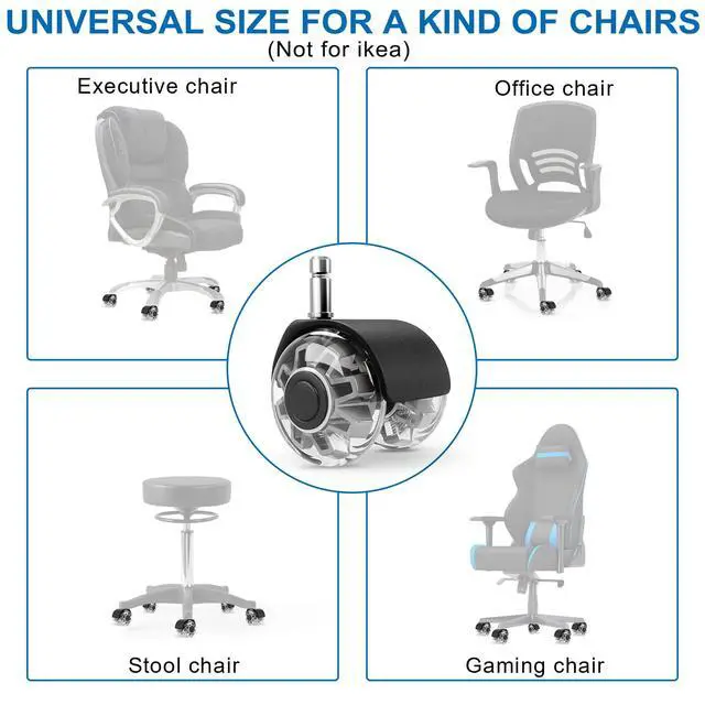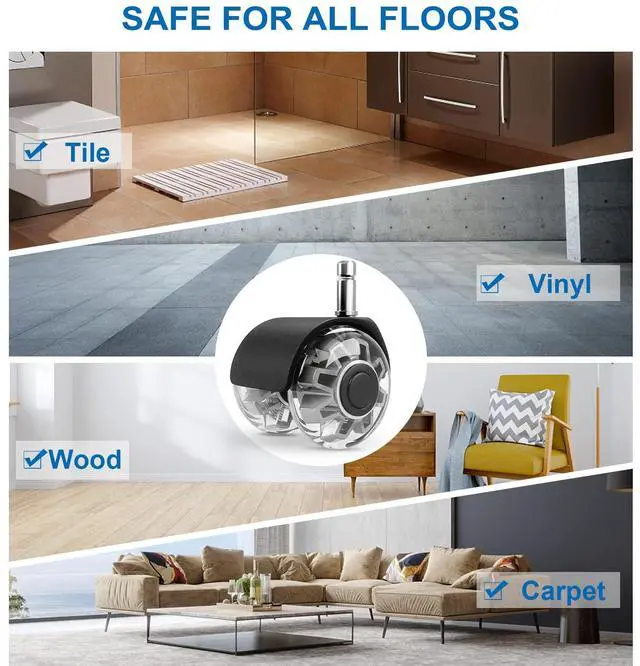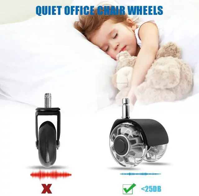 - Replace your standard plastic chair caster set without worrying about disturbing anyone.