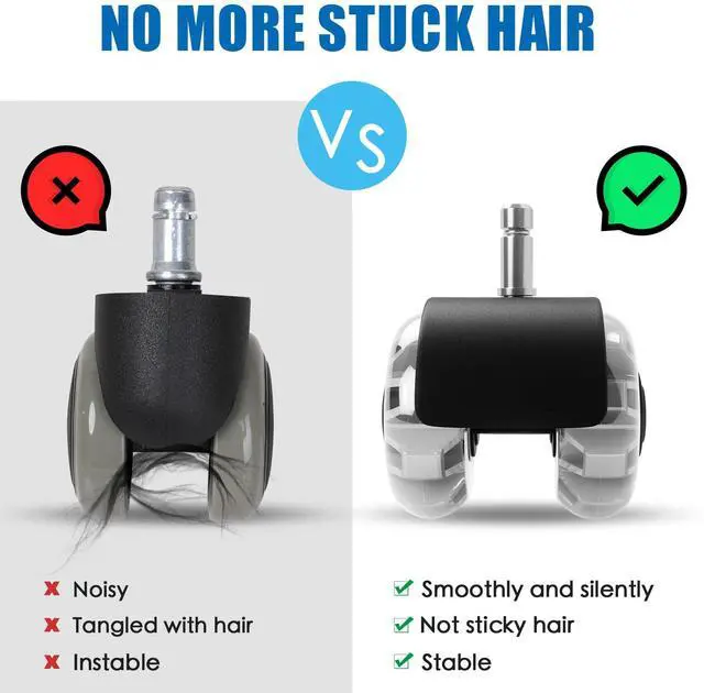 Unlike other casters, our new upgraded office chair wheel replacement won't get tangled in your hair, including your pet's hair. Very suitable for home or office use, you have nothing to hesitate