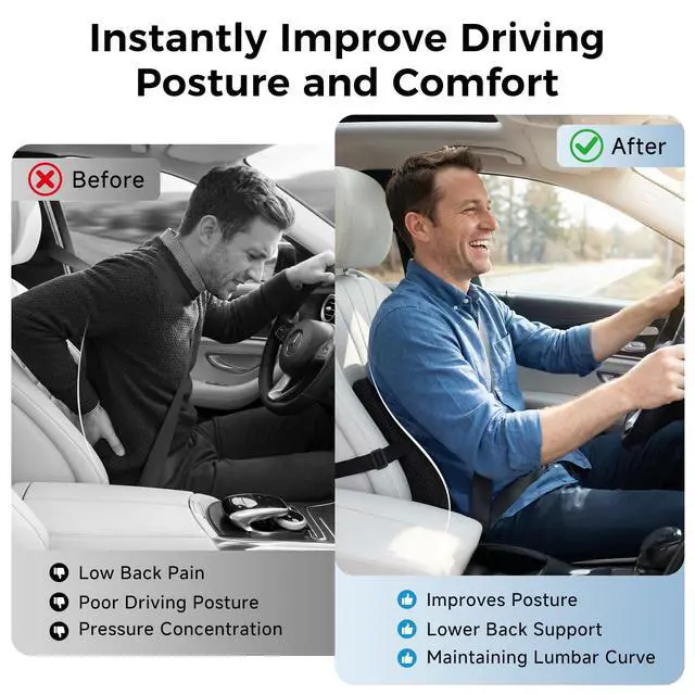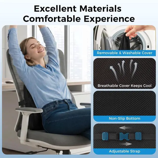 All-Day Comfort & Support - The lumbar support pillow is made of premium high-density memory foam that contours to your lower back, relieves lower back pain for cloud-like comfort, even during long hours of sitting