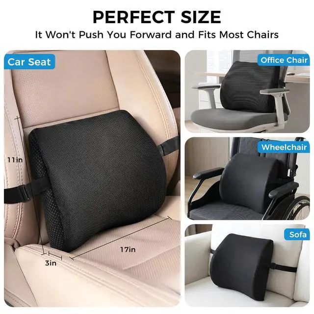 Universal Fit for Most Chairs - The car lumbar support is of moderate size and supportive, fits most office chairs, car seats, truck, wheelchair. Take your car seat back support pillow anywhere, ideal for home, work, or trave