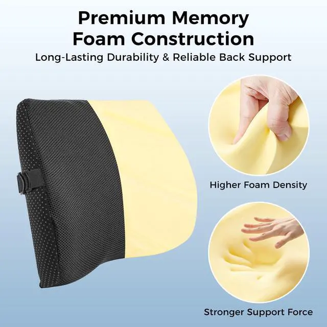 Premium Memory Foam Construction - High-density memory foam material provides consistent support and maintains its shape over time, ensuring long-lasting durability and reliable back support