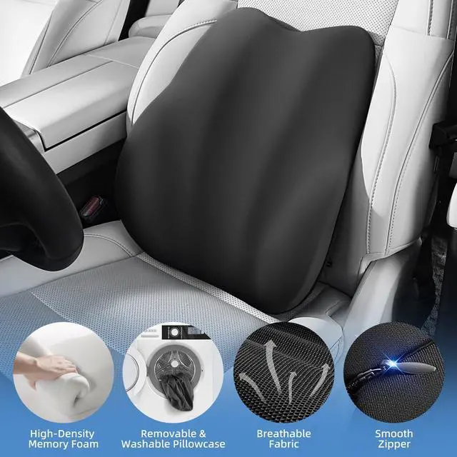 BREATHABLE & WASHABLE COVER - The surface of our car back support features a breathable and machine-washable cover, which is soft and durable, keep your back cool and comfortable. The removable design makes cleaning a breeze, ensuring your lumbar pillow remains fresh and stylish. Please note that the memory foam part not machine washable.