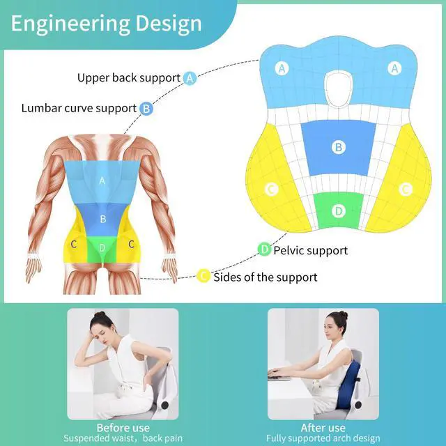 • Ergonomic Design: Seeknow chair back cushion boasts an advanced four-point ergonomic design that seamlessly contours to your back. It envelops the lumbar spine, alleviating lower back strain. Our upgraded large-size desk chair lumbar support doesn't just ease lower back fatigue; it extends upwards to the scapula region, releasing pressure and ensuring a relaxed, comfortable sitting experience.