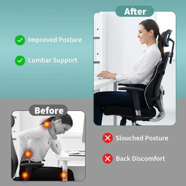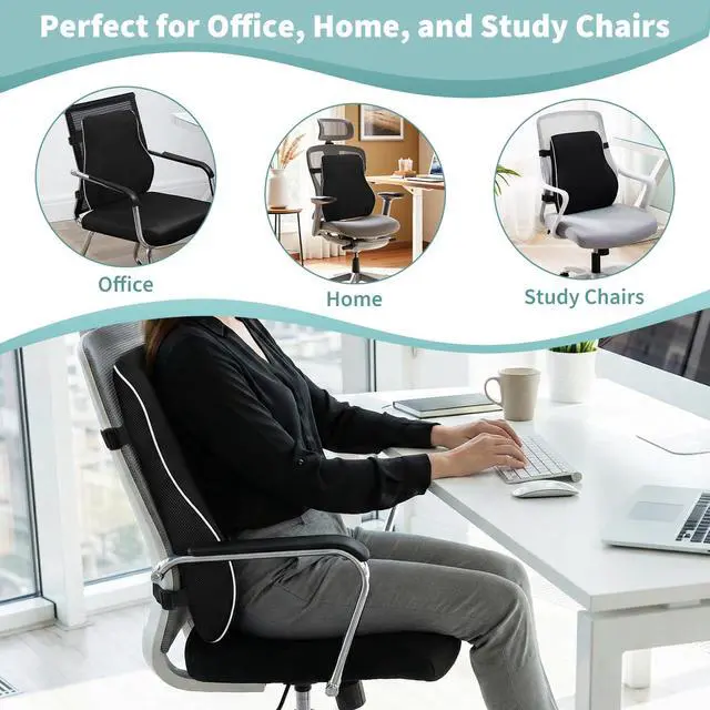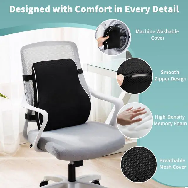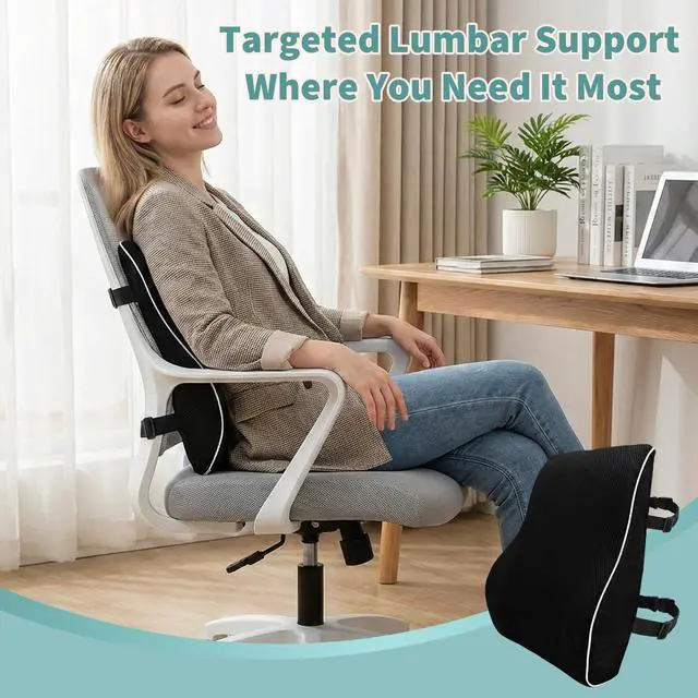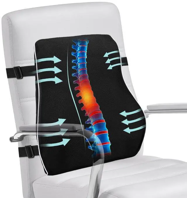 This ergonomic memory foam lumbar support pillow provides breathable, consistent back support for office chairs, helping relief pressure and improve sitting comfort during long workdays.