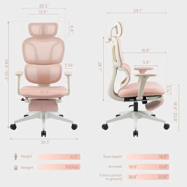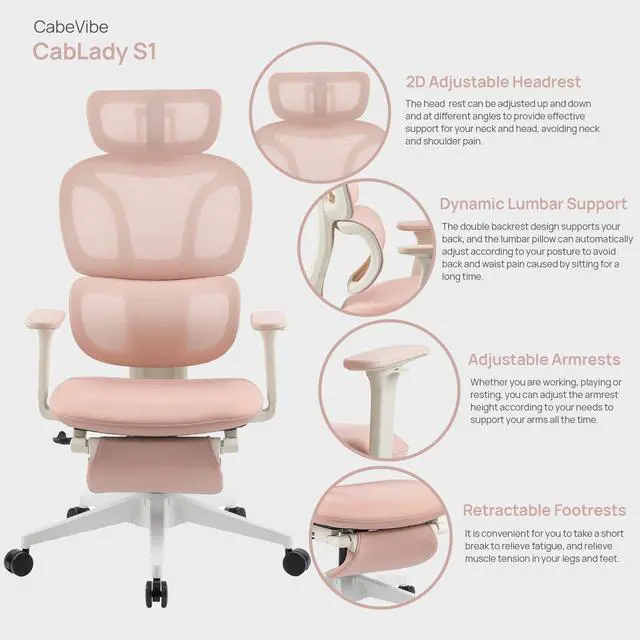 Designed for gaming marathons and long office hours, this ergonomic high-back chair features a dual-backrest with dynamic lumbar support that adapts to your posture, easing back strain and improving alignment. A breathable mesh back keeps you cool, while the curved sponge seat cushion relieves hip pressure for all-day comfort. The 2D adjustable headrest and height-adjustable armrests let you customize support for neck, shoulders, and armsperfect for staying focused whether at your desk or in the game.