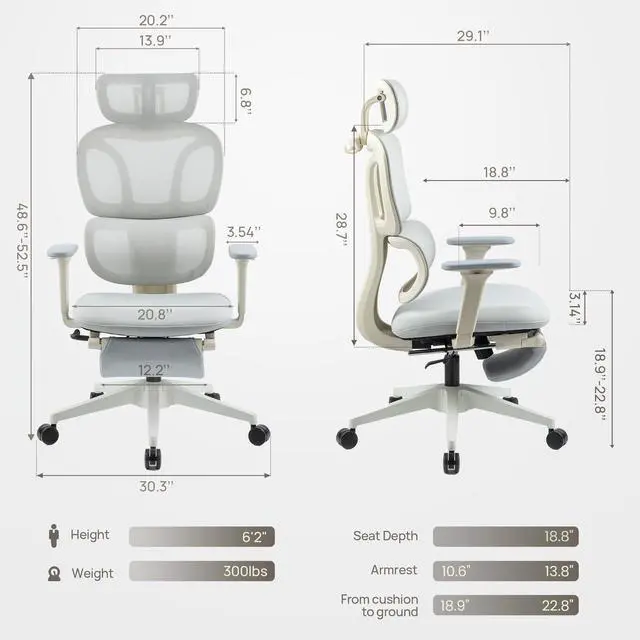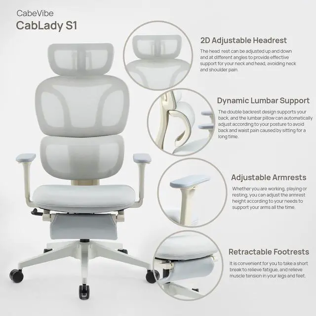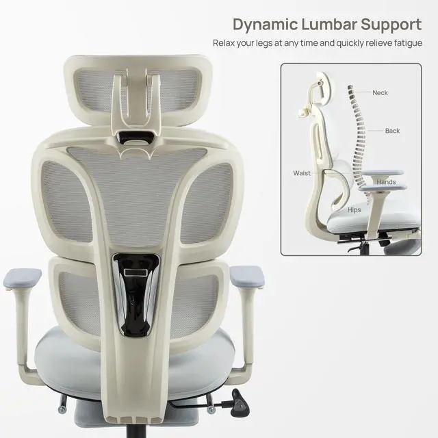 Designed for gaming marathons and long office hours, this ergonomic high-back chair features a dual-backrest with dynamic lumbar support that adapts to your posture, easing back strain and improving alignment. A breathable mesh back keeps you cool, while the curved sponge seat cushion relieves hip pressure for all-day comfort. The 2D adjustable headrest and height-adjustable armrests let you customize support for neck, shoulders, and armsperfect for staying focused whether at your desk or in the game.