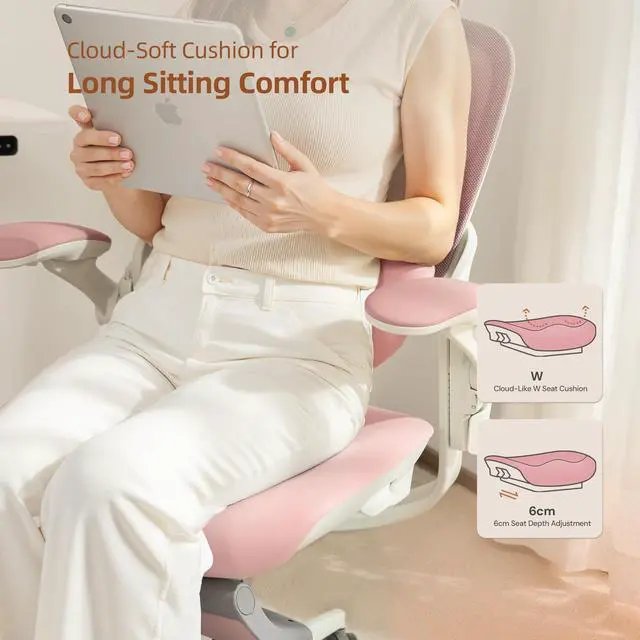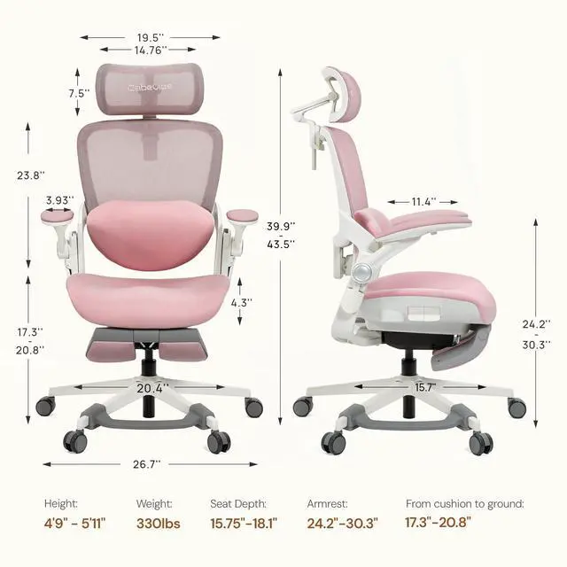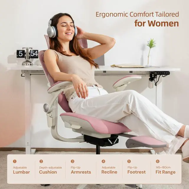 | Discover comfort designed for petite and small-frame users with the CabLady S2 Ergonomic Office Chair. Unlike oversized office chairs that dont fit, this chair is engineered with a lower seat height, shorter seat depth, and adjustable low-position lumbar support to perfectly match smaller body types. The thick foam seat cushion and padded lumbar deliver softness and ergonomic stability, keeping you supported during long hours of work or study. For personalized comfort, the CabLady S2 features a one-touch recline with a side button, adjustable headrest, 3D armrests, extendable footrest, and leg support. Slim users from 4'7" to 5'11" can finally enjoy a chair that adapts to their exact needs. Its compact design with narrower armrest spacing and 90° flip-up arms saves valuable floor space, making it ideal for bedrooms, home offices, or small studios. Built with breathable fabric in a soft, modern style, this chair blends seamlessly with any workspace décor. Dual silent casters glide smoothly across hardwood floors, carpets, and tiles without noise. A sturdy white nylon 5-star base provides anti-tip stability and supports up to 330 lbs. Easy to assemble with illustrated instructions, this ergonomic chair delivers both beauty and durability. Certified by BIFMA and backed by patented design, the CabLady S2 proves that when it comes to petite comfortfocus creates professionalism. |