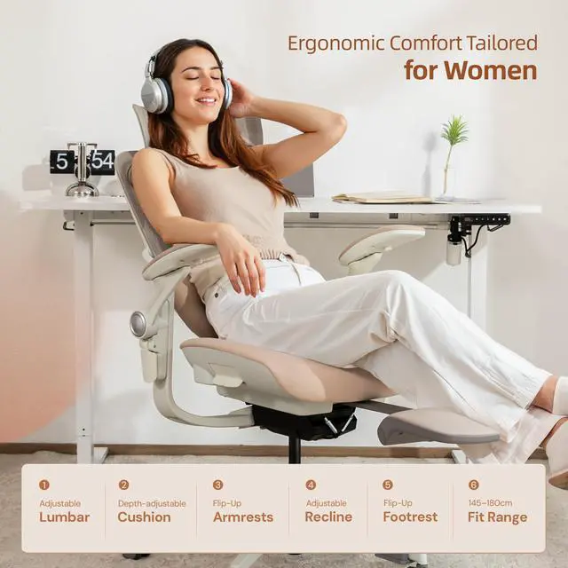 Made with breathable fabric and a modern feminine design, it glides quietly on dual silent casters and supports up to 330 lbs on a white nylon 5-star base. Easy to assemble, BIFMA certified, and patented for ergonomic precision, the CabLady S2 delivers beauty, comfort, and reliability built for smaller frames.