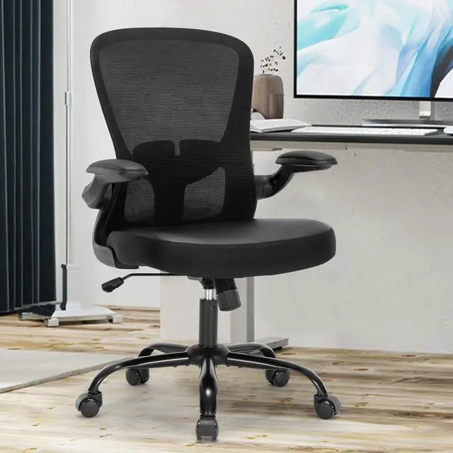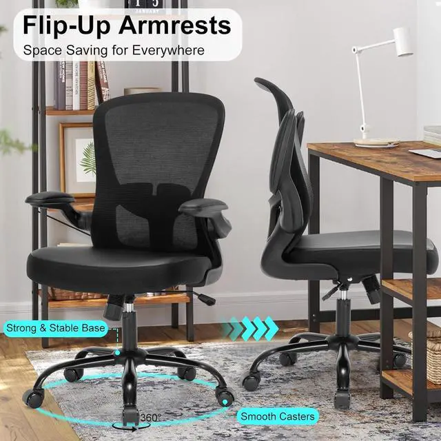 Multiple Office Chairs-Office chairs with flip-up armrests make it easier to store under a desk and save space. They have smooth wheels that can be easily rotated, facilitating users to move around the office. The seat height of the desk chair is adjustable within the range of 18.11 " - 21.06 ". When resting, you can pull out the adjustment lever and rotating button to put the backrest into rocking mode, with the backrest tilt angle ranging from 90° to 130°. (Note: The office chair can only be locked in the 90° upright position. )
