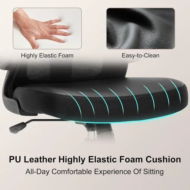 PU Leather Comfortable Cushion-The chair' s cushion is made of high elastic sponge foam, which is 2.75 " thick and 20.66 " wide, providing a soft and highly resilient seat that can effectively relieve fatigue after sitting for a long time. The chair' s back features a breathable, highly elastic tensile mesh that promotes good air circulation, keeping you cool even when sitting for long periods.