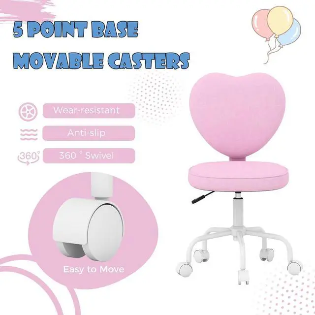 Heart Shape: The cute love heart-shaped appearance makes this pink desk chair a good partner for some younger users to study and play.